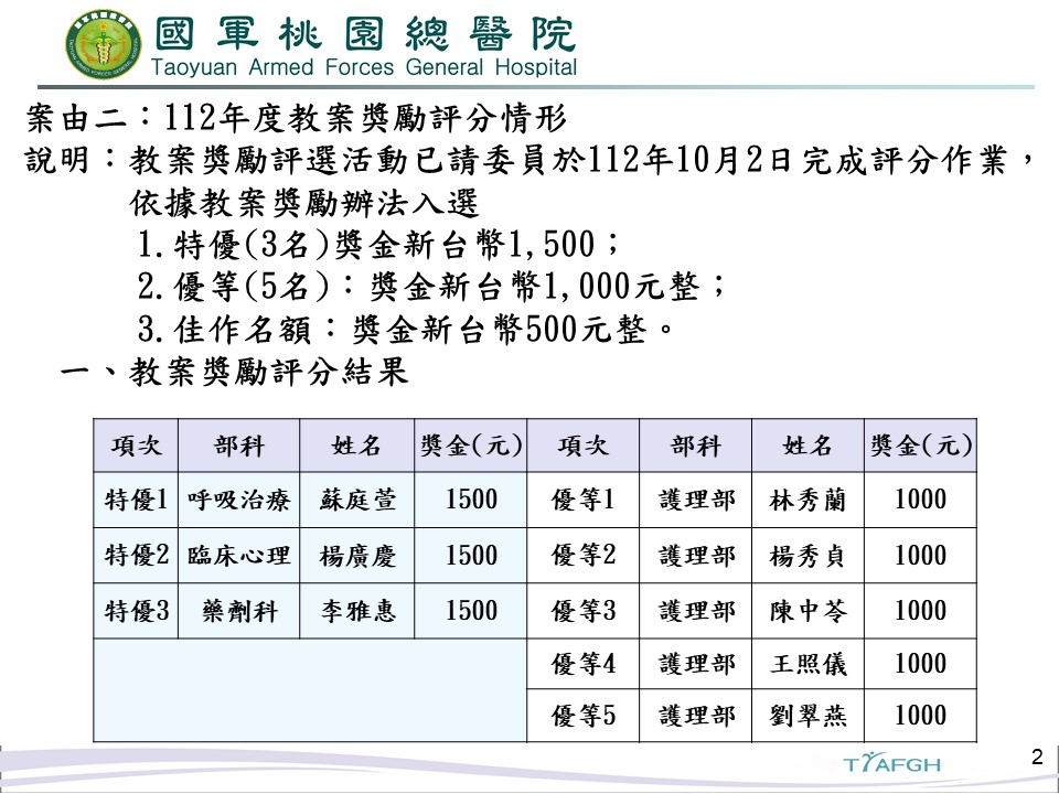 112年優良教師、教案獎勵、學術貢獻獲獎名冊